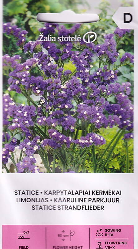 Kermec (Statice) ist eine der beliebtesten Trockenblumen. Pflanze bis zu 60 cm hoch. Getrocknete Blüten behalten lange ihre Farbe. Blüht reichlich von Juli bis zum Frost.