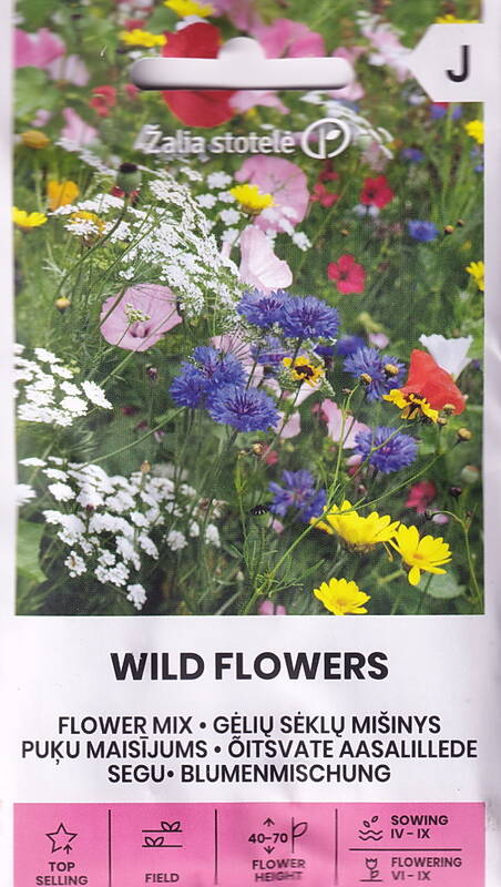 Sekoitus vaatimattomia, korkeakasvuisia "Wild flowers" (noin 25 lajia).