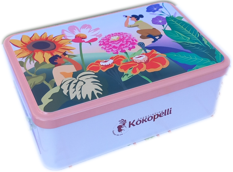 Комплект аккуратно уложен в иллюстрированную металлическую коробку, идеально подходящую для хранения пакетиков с семенами.