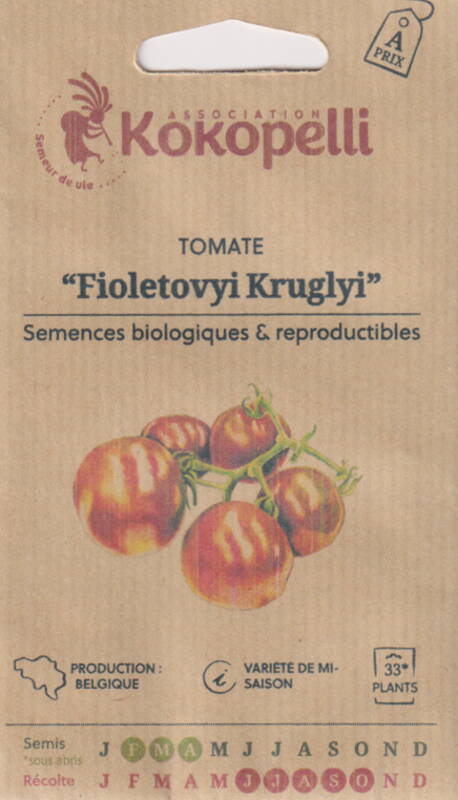 Historik: Denna sort introducerades i USA 2009 från frön som skickades av Andrey Baranovski från Minsk, Vitryssland. Översatt från ryska betyder namnet "purpur-rund" (lila rund).